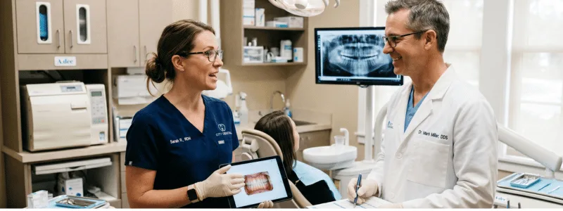In a functioning dental practice, a hygienist’s day typically runs parallel to the dentist’s schedule but intersects at key moments. The hygienist manages their own patient flow, seeing four to eight patients during a standard shift , while the dentist rotates in to conduct exams and review findings.